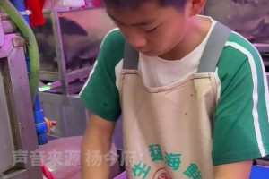 春假期间,学生在鱼档帮父母,杀鱼刮鳞动作娴熟麻利。