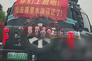 开满是鲜花的幸福花车 "你们上班吧!我去赛里木湖领证了!"